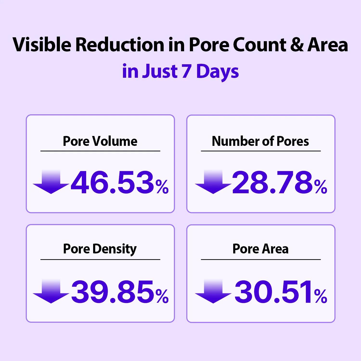 • Reduce volumul, numărul și suprafața porilor; îmbunătățește aspectul în 7 zile.