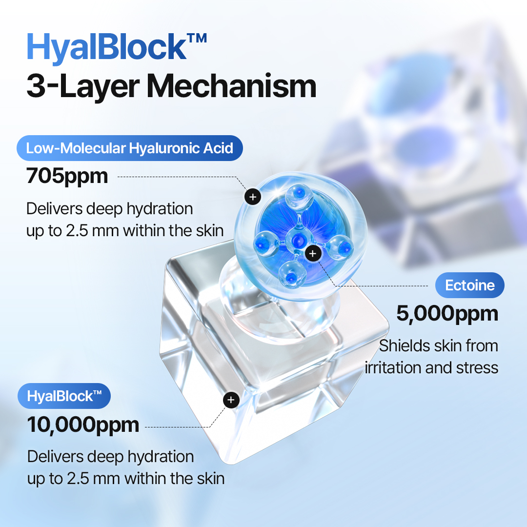 Water, Propanediol, Butylene Glycol, Glycerin, Tripropylene Glycol, Diethoxyethyl Succinate, 1,2-Hexanediol, Ectoin, Hydroxyacetophenone, Glycereth-25 PCA Isostearate, Sodium Hyaluronate, Poloxamer 407, Arginine, Carbomer, Ethylhexylglycerin, Disodium EDTA, Xanthan Gum, Asiaticoside, Asiatic Acid, Madecassic Acid, Hyaluronic Acid, Hydrolyzed Hyaluronic Acid, Sodium Hyaluronate Crosspolymer.