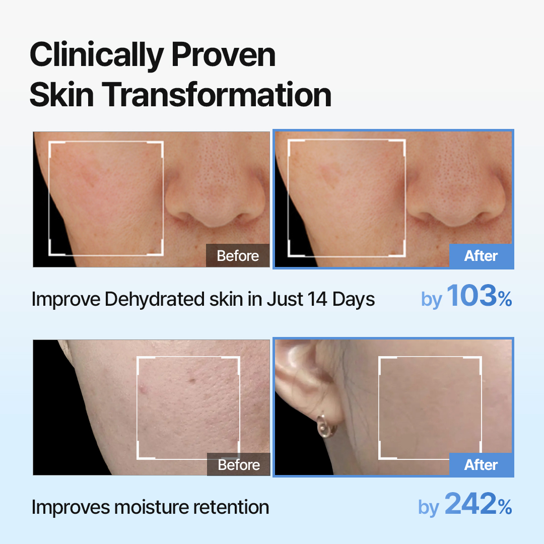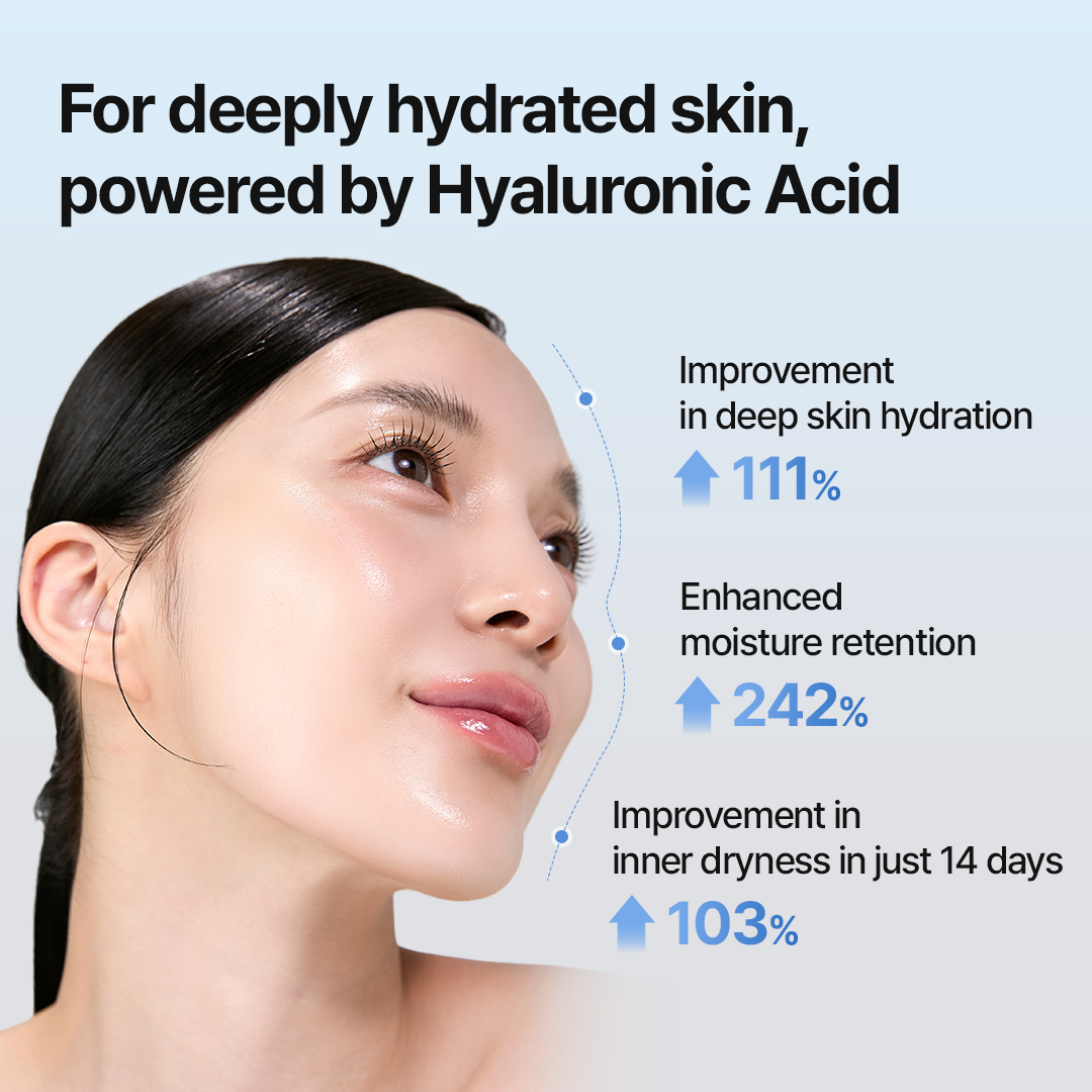 Formula contine patru forme distincte de acid hialuronic: Sodium Hyaluronate, Hyaluronic Acid, Hydrolyzed Hyaluronic Acid si Sodium Hyaluronate Crosspolymer. Aceasta combinatie avansata asigura o hidratare profunda si de lunga durata.